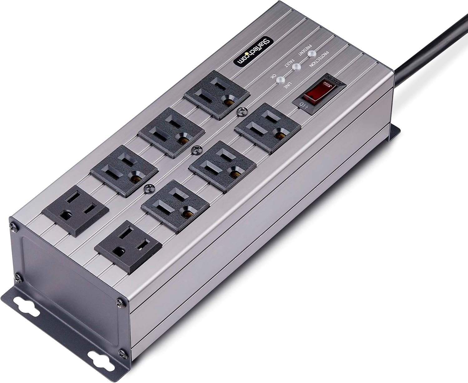 - OPTIMIZED DESIGN: Heavy-duty extruded aluminum housing with widely spaced outlets; Select outlets positioned at right-angles to ensure outlet access; Attached 12 ft. (3.6m) long power cord; Protection/Fault/Line Ok LEDs for easy power-health monitoring